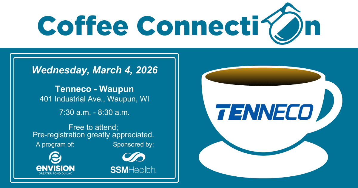 Coffee Connections are open to all members of Envision Greater Fond du Lac. If you are interested in attending as a guest, please contact Mike at mrhode@envisiongreaterfdl.com.