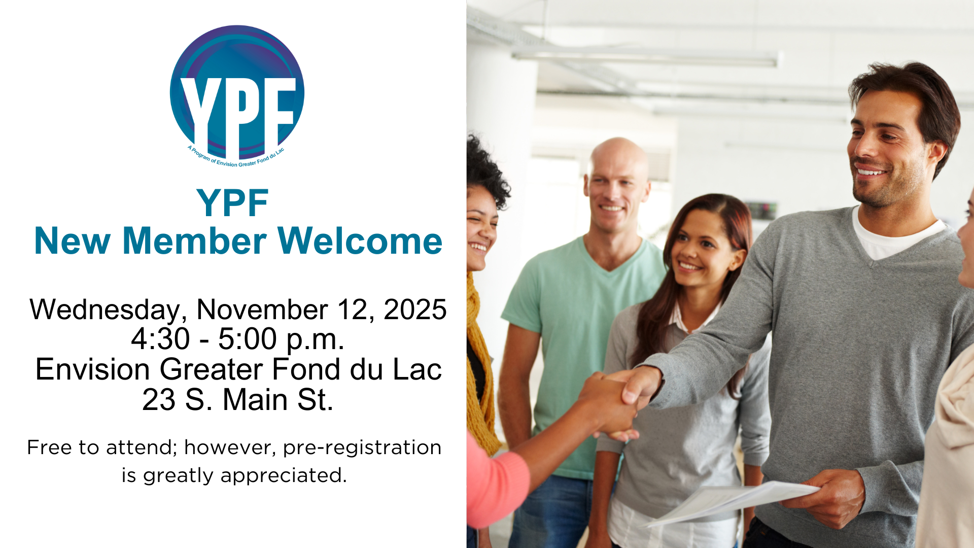 Our YPF New Member Welcome is a chance to navigate all YPF has to offer, whether you’re new to the workforce, the Fond du Lac area, or to YPF! This event will showcase the membership benefits of YPF and teach you how to best leverage its resources personally and professionally. YPF program volunteers will share information about the organization’s mission and vision, various volunteer opportunities, upcoming programming, events, and more. Additionally, please join us at the Cellar District after our short presentation for our Midweek Meet-up from 5:00 - 7:00 p.m. to join other YPF members! Feel free to park in our parking lot at 9 Sheboygan St. Is there anything we can do to make this event as accessible and enjoyable as possible for you? We want to ensure everyone feels comfortable and has a great experience, so please let us know if there are specific accommodations or assistance that would enhance your enjoyment by contacting us at: info@envisiongreaterfdl.com